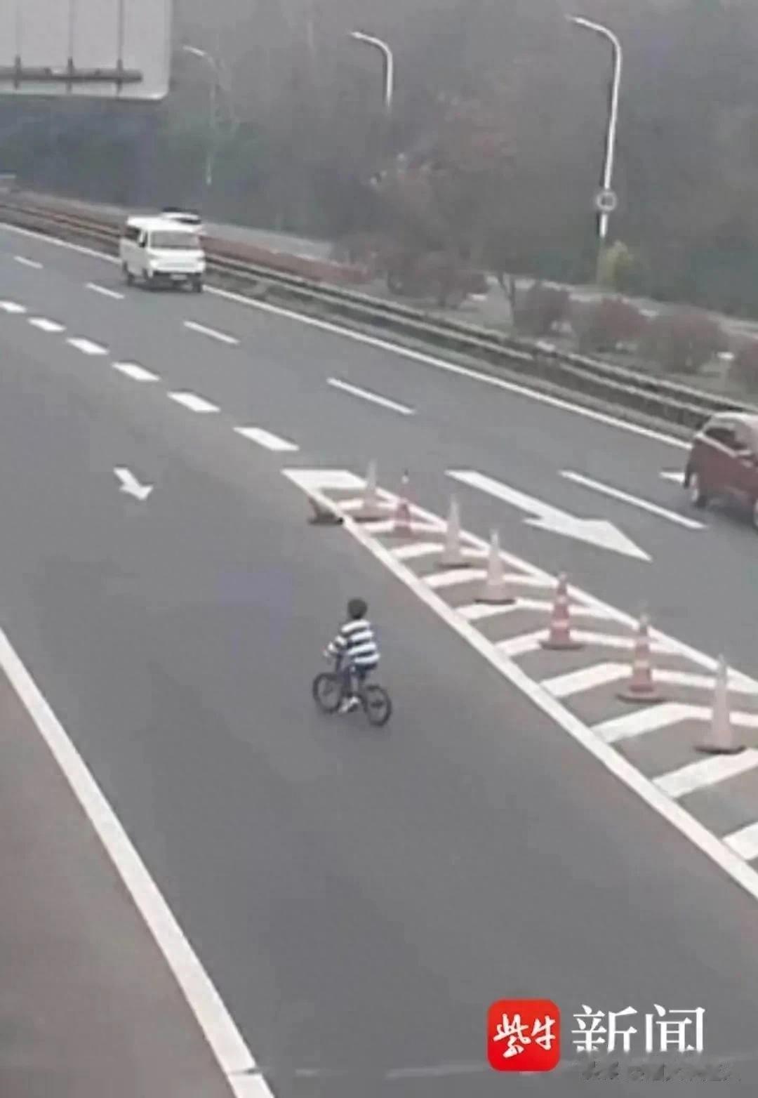 孩子说,跟奶奶走散后,就想自己骑车回家,顺着路就骑上了高速。