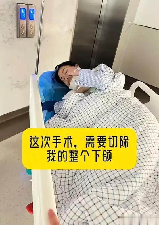 术后病床上的薛静十分虚弱,长发已变短发,下颌部被大大的纱布包裹着,姐姐在旁边悉心照料,满眼都是心疼。