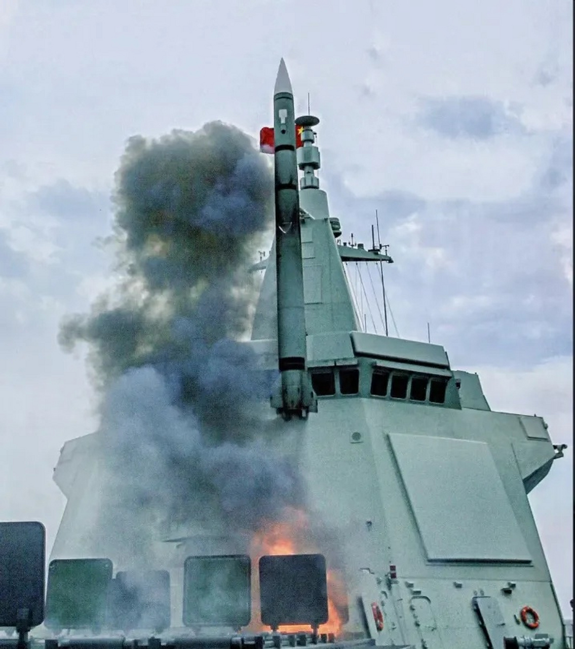 055驱逐舰发射海红旗-9B远程舰空导弹