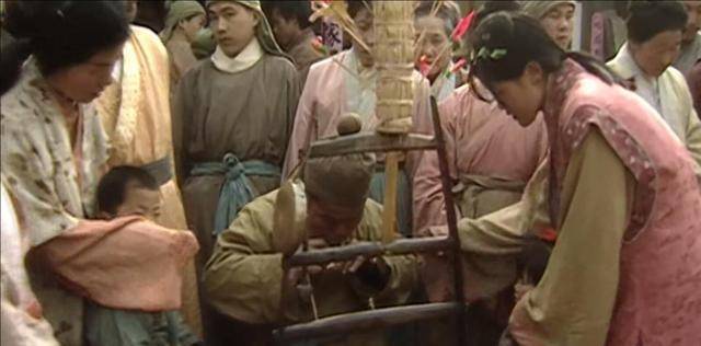 这些在《水浒传》第一集开头也实景还原了,其中鳞次栉比的酒店茶楼都快占满了街道,大街上有乘坐轿子的大家眷属,也有用骡马驴子拉货物的人,有带着孩子围住面人师父捏面人的大人小孩,沿街有售卖雨伞的商贩,也有合着机会十人之力染布的,有人负责拉风箱,有人负责在大缸里搅拌扎染,还有两人拿出布匹晾晒,还有在街边摆个桌子,边看热闹边等顾客上门的算命先生,酒楼里有人在唱曲儿,街上有人耍着棍棒赚些吆喝和钱财,也有人在养生馆也许是医馆里拔罐、按摩,总之从这一条街上看过去,可真正是人群拥挤,热闹非凡。