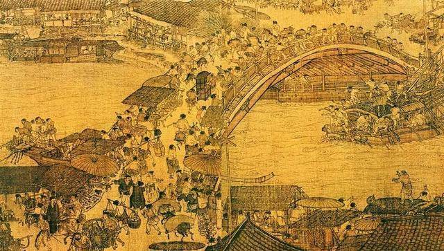 《水浒传》讲的是北宋宋徽宗时期的故事,《清明上河图》画的也是宋徽宗在位期间都城东京的状况,主要是汴京以及汴河两岸的自然风光和繁荣景象。说到两个主要人物,还有个小知识点可以告诉大家,宋徽宗的生于1082年,卒于1135年,《清明上河图》的作者张择端生于1085年,卒于1145年,所以四舍五入一下,张择端和宋徽宗算是同岁,而关于这二人还有更巧妙的关系,宋徽宗在位期间,张择端供职于翰林图画院。这幅十大名画之一的《清明上河图》就是张择端进献给宋徽宗的贡品。所以说98版《水浒传》用上《清明上河图》的素材再合适不过了。