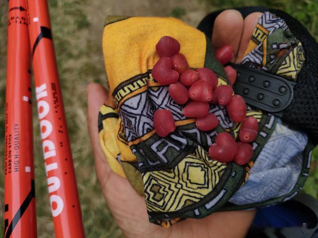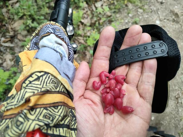 还有,此行也看了壮阔的漾水崖瀑布,小心翼翼过了无数遍的"独木桥",最后出山,沿路再走了四五公里,却吃了一路红透了的羊奶子,不是几粒几粒地吃,却是一把一把吃,吃得自己都疑,问小杜会不会中毒,着实过瘾……