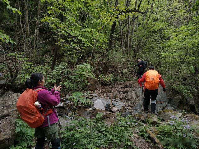 这次从东沟到青峰山再到漾水崖出十二盘,东沟、青峰山等可算是故地再游了。故地再游,新意十足,一路林木草甸循环,上则挥汗如雨,出则凉风习习,但有路径,也算安慰,比起连滚带爬式的闯行强了很多。去青峰寺途中,雨大了起来,大家终于穿了雨衣。上去看天眼,雨又小了,雨衣再未使用。大家说,今日好,这天气,清清爽爽,适合爬山。