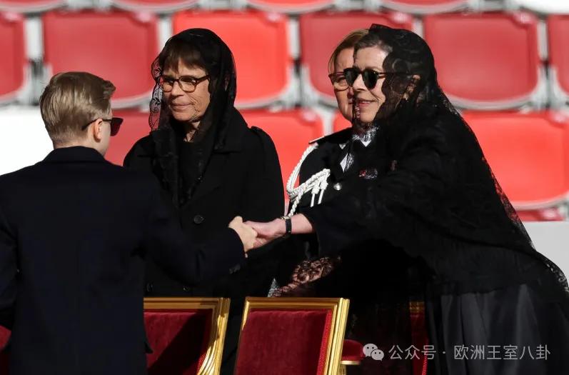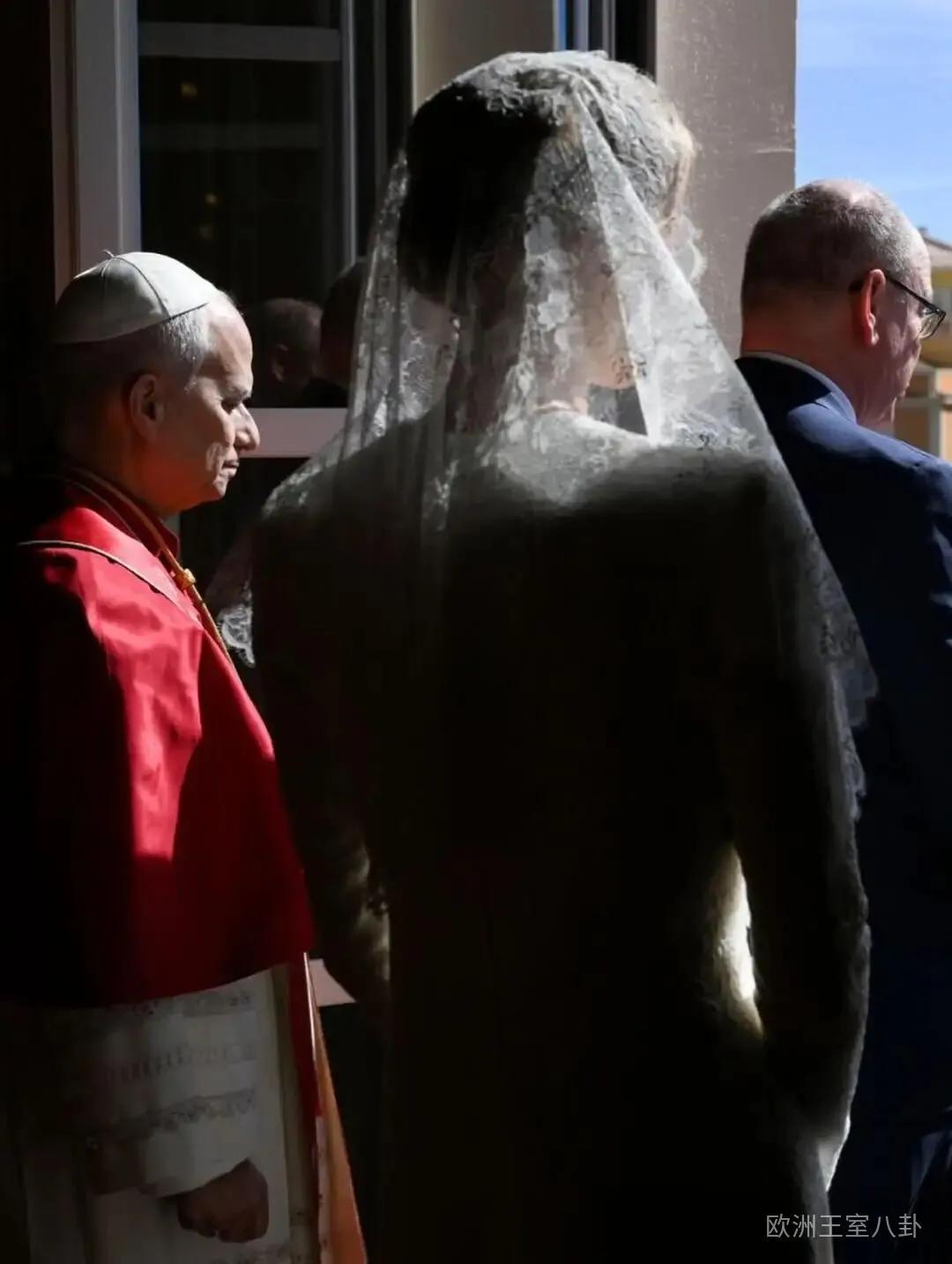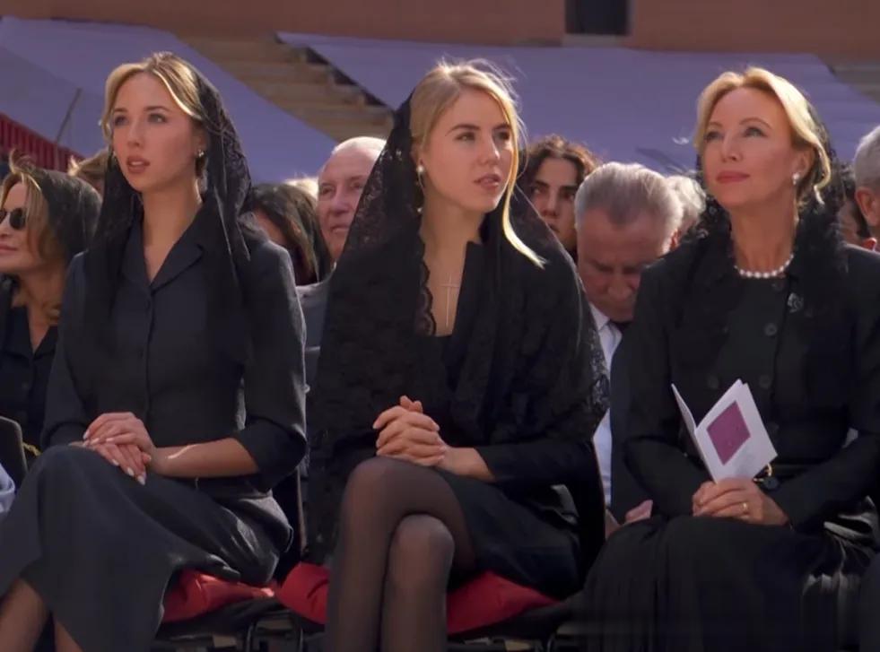 其他七大姑八大姨站另一边,成年女性在教皇面前一般穿黑。白色特权仅限于天主教君主国女性君主(or君主夫人),3个条件缺一不可