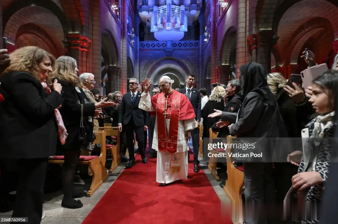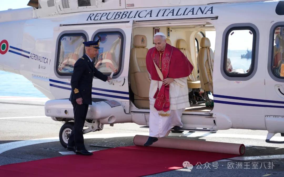 昨天早上,现任教皇良(利奥)十四世坐直升飞机到达