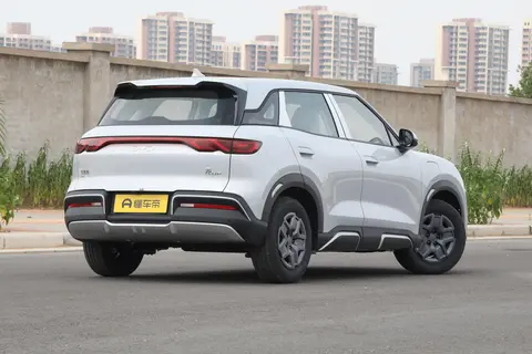 侧面更有看点,平直的车顶、垂直的D柱,还有外扩的防刮轮眉,配上16英寸的铝合金轮毂,越野范儿直接拉满。更实用的是车顶标配的黑色金属行李架,周末装个自行车、行李箱完全没问题,露营带的帐篷、天幕也能往上面绑。