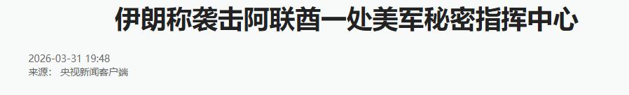 伊朗无人机精准打击阿联酋美军秘密指挥中心——2026-03-31 来源:新华社