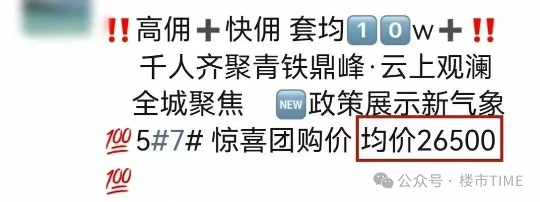今年6月底,云上观澜交房,本以为现房入市销售会有所好转,可现实是,熬到现房阶段反而更难卖。于是到了8月,云上观澜以“惊喜团购价”的模式,一下把均价拉到了2.65万/㎡(注意是均价)。