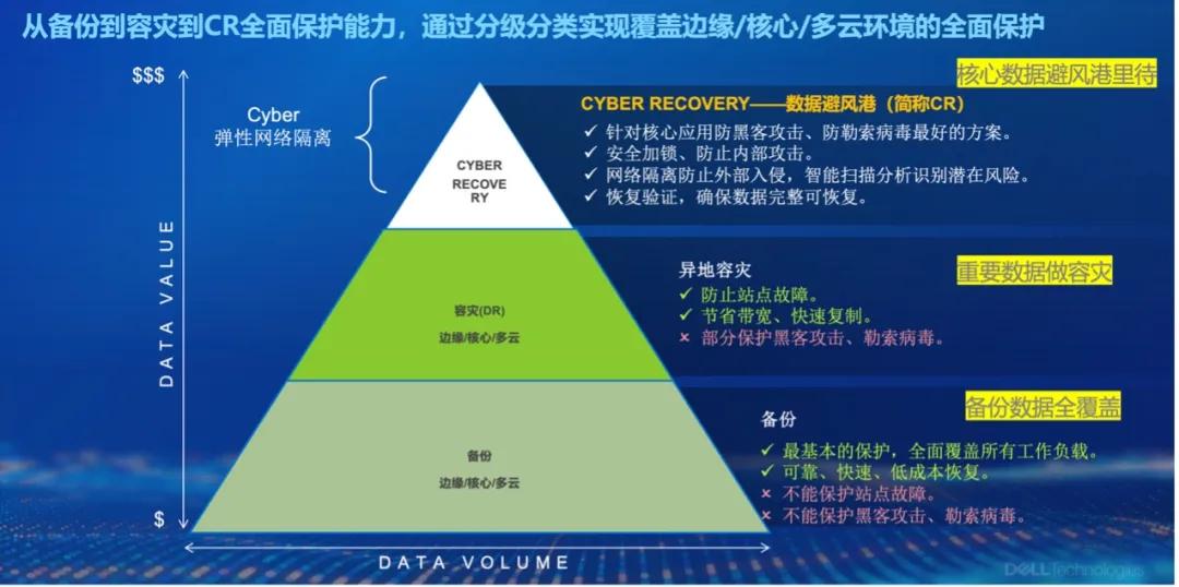 而特别值得一提的是,戴尔科技数据避风港(CR)解决方案,该方案通过标准化配置和恢复服务选项,简化了网络恢复解决方案的部署,同时通过模板恢复运行手册和程序,给客户提供更多控制,具备“断”、“舍”、“离”、“锁”、“侦”等特点。