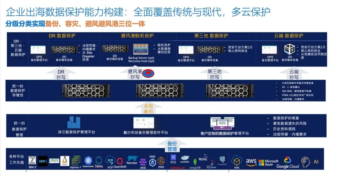 也正因此,无论云上还是云下,无论多云还是混合云,戴尔对此都有相应的解决方案可以提供,从而为出海企业用户实现完整、安全和可靠的数据保护体系。