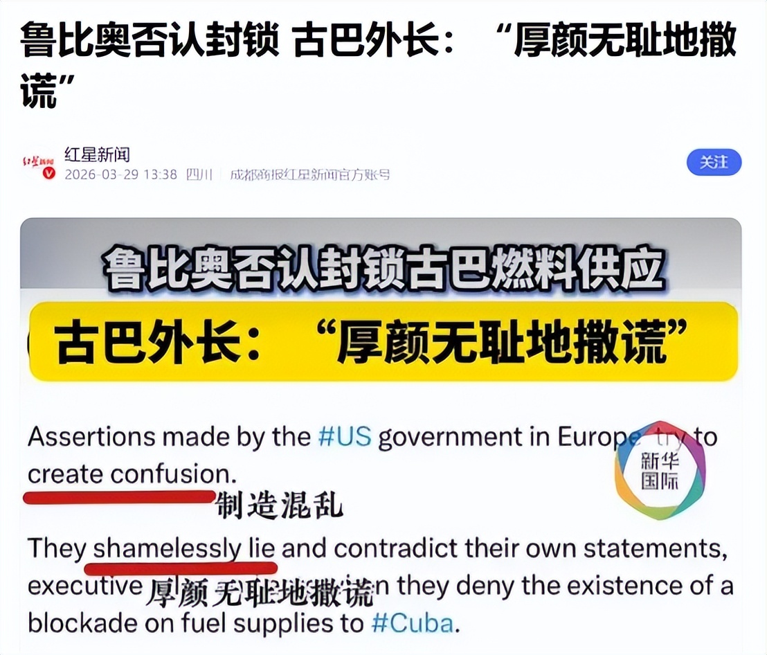 鲁比奥否认封锁 古巴外长:“厚颜无耻地撒谎”——2026-03-29 13:38——红星新闻