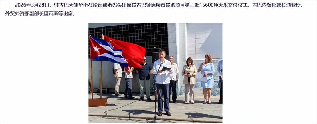 就在鲁比奥的话音刚落之际,中国援助古巴的第三批1.5万吨大米已于26日运抵哈瓦那港,28日举行了交付仪式,也解决了他们的一大危机。