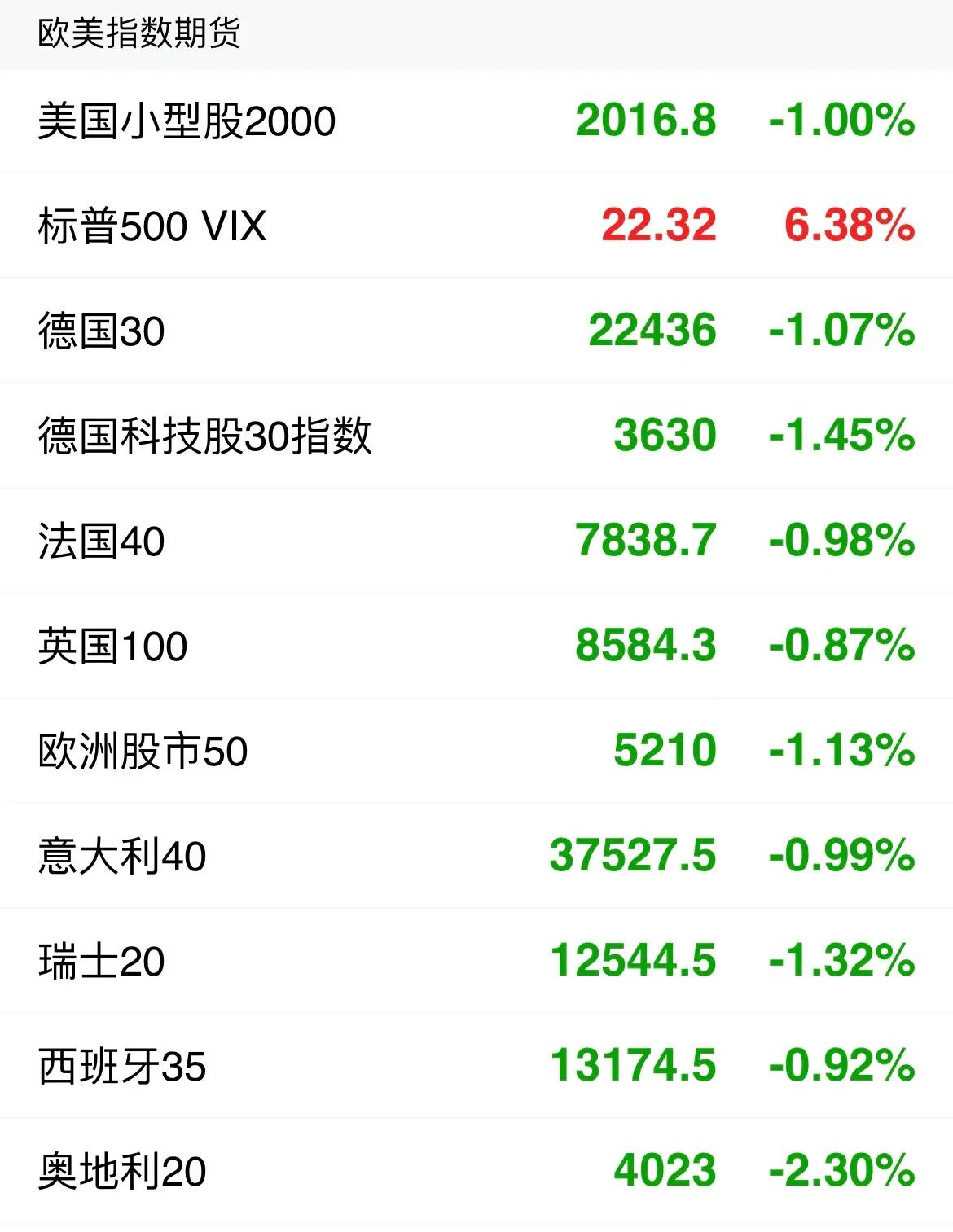 今天白天欧美期指继续下跌,小型纳指跌1.30%,德国科技股指数跌1.02%,法国40、英国100均纷纷下跌。黑色星期一名副其实。