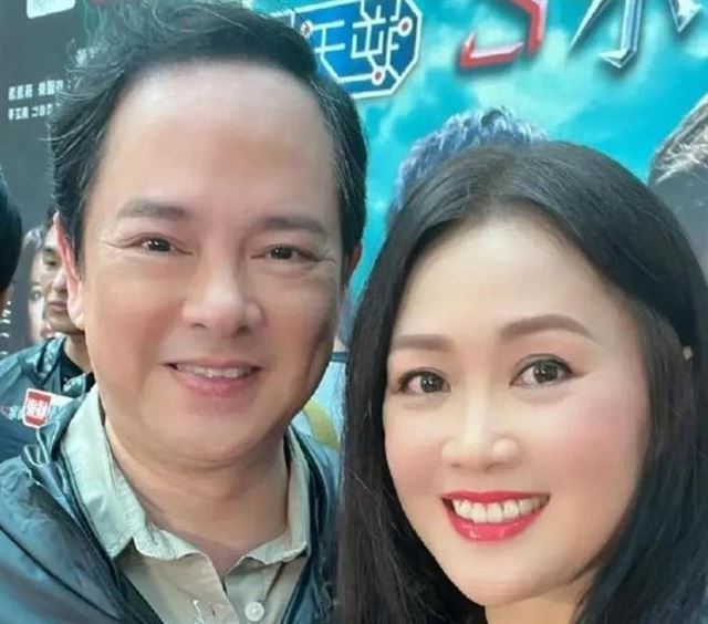 站在她身边的陈嘉辉,尽管已经不再是那个帅气逼人的奶油小生,但他那温暖的笑容和眼神中对妻子的爱意,从未改变。