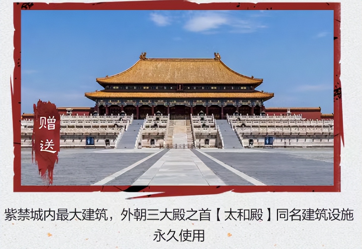 除了人物,本次联动甚至把紫禁城的地标——太和殿,也“搬”进了游戏中,成为每个玩家在自己的主城中可永久使用的建筑。
