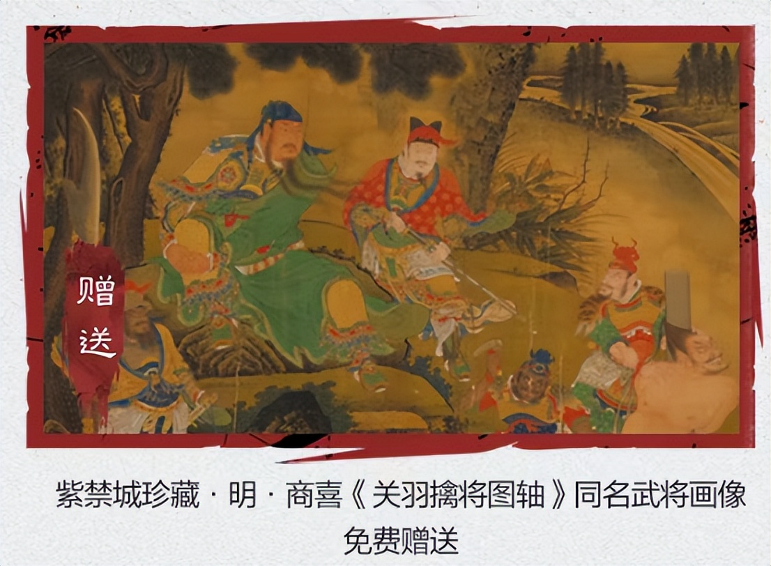 这次联动,官方选取了故宫另一件重磅藏品——明代宫廷画家商喜的《关羽擒将图轴》。中的关羽关二爷凤眼蚕眉,威风八面,正是我们心中“武圣”的经典形象。