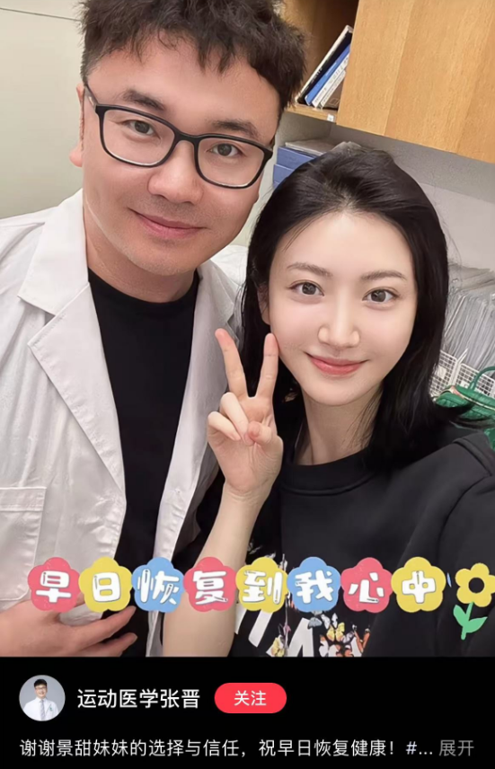 张医生还发了视频回应,张医生说谢谢景甜妹妹的选择,祝早日康复,张医生还晒出与景甜的合影,画面中,景甜状态看上去好多了。