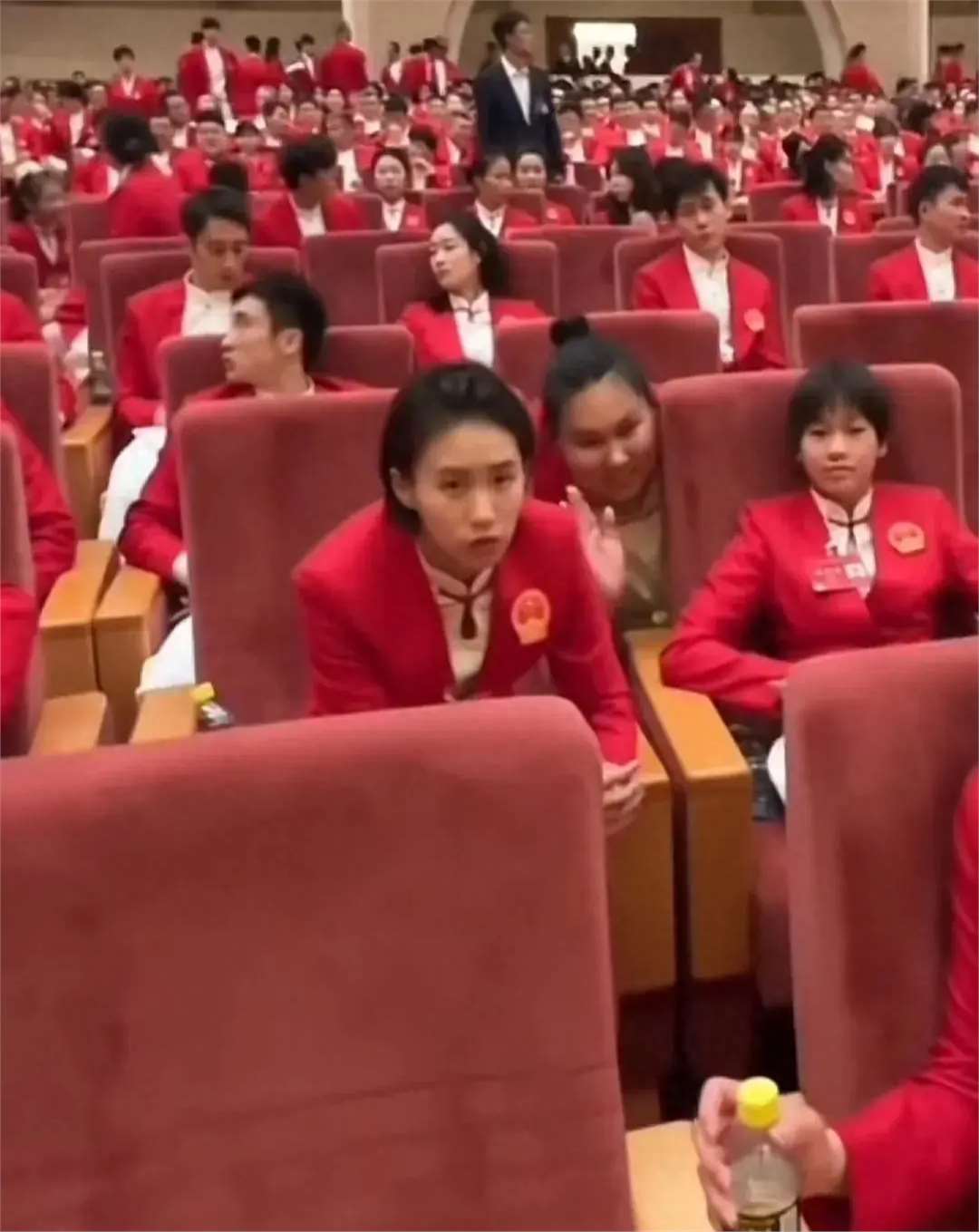 在表彰大会上,全红婵身着华丽的礼服,佩戴着两枚闪闪发光的金牌,站在第一排运动员的C位。这一刻,她无疑是全场最耀眼的明星。她的笑容灿烂而纯真,眼神中透露出对未来的期待和憧憬。她用自己的实力和努力,赢得了这份来之不易的荣誉和掌声。