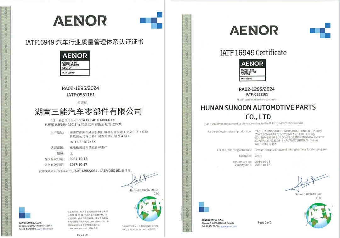 在波澜壮阔的汽车工业发展浪潮中,每一个零部件的精度与可靠性,都直接关乎着整车的安全、性能与用户体验。作为汽车的“神经网络”,高低压线束系统的重要性不言而喻。湖南三能汽车零部件有限公司(以下简称“三能线束”)在2024年就已经成功通过了国际公认的严苛标准——IATF