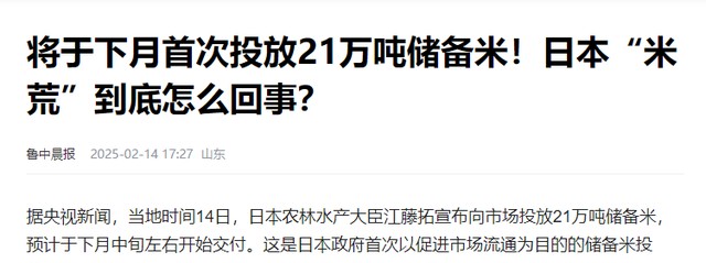 日本的大米在2月份的时候,价格和去年2月份比可是上涨了足足90%,而在民众和专家都在思考这一问题是如何出现的时候,日媒出现了,他们对于这个问题的答案是——因为中国。