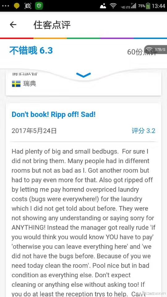 国际网站一般评价很客观,不会修改,在国内平台因相信评价所以没有细看,其实这度假村已经是劣迹差评不少,低于七分不值得考虑,还要评价数多于100或者200。