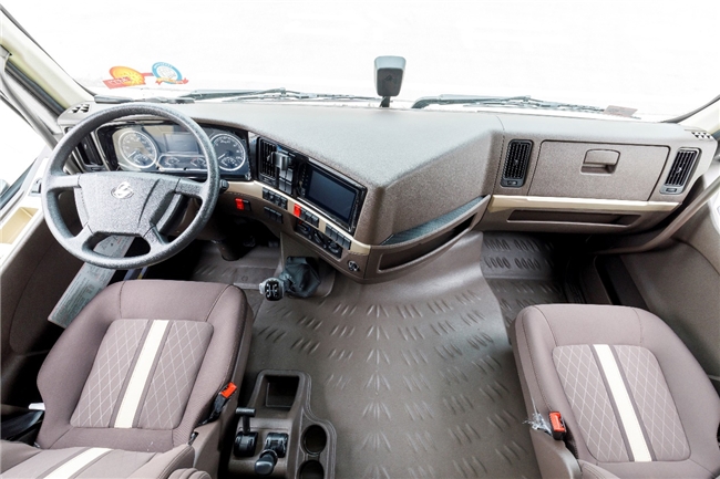 驾驶室是卡友的移动之家。乘龙H5电动饲料车配备皮质多功能方向盘、气囊减震座椅,有效缓解长途驾驶疲劳。集成乘龙V+新能源车联网系统,行车记录仪带卫星定位,实现车辆状态远程监控、能耗分析、行驶轨迹管理,助力车队或个人用户精细化管理,提升运营效率。AMT自动变速箱的加入,显著降低驾驶强度,让复杂路况下的操控更轻松。
