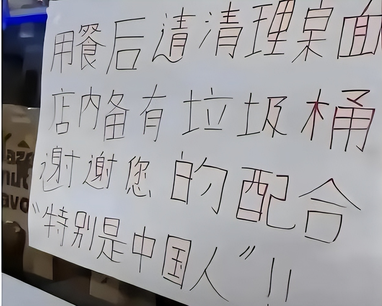 不是多语言并列的便民提醒,而是专门写给中国人、甚至只写中文的 “专属规矩”,字里行间的偏见与不尊重,任谁看了都心里窝火。