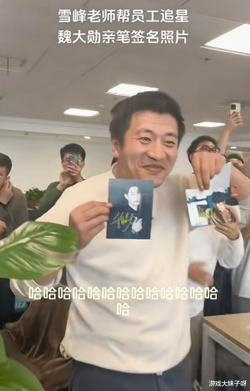 一些细节尤其让人破防,比如他会记住员工的喜好,有人喜欢魏大勋,他就悄悄去帮忙要来亲笔签名照,当他把照片递出去的那一刻,更像是长辈兑现承诺的小惊喜,对外人来说,这或许只是举手之劳,但对当事人而言,却是一份被认真对待的在意。
