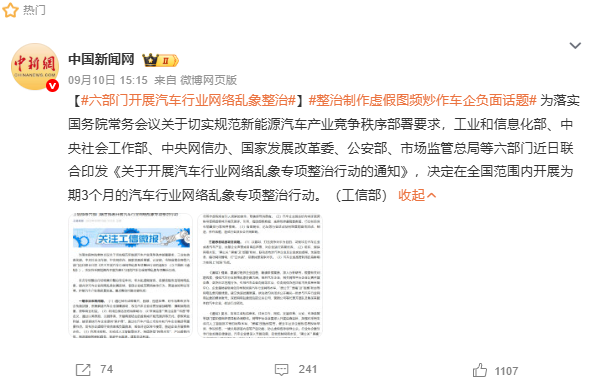 网络水军们的一系列行径,已经在一定程度上影响消费者对国产车的信心及认可,破坏了整个汽车产业生态。为此,国家开始连续重拳出击。继上半年的“清朗”系列专项行动后,近期工信部、中央网信办、国家发展改革委等六部门又联合印发《关于开展汽车行业网络乱象专项整治行动的通知》,决定在全国范围内开展为期3个月的汽车行业网络乱象专项整治行动。通知中专门提及,要重点整治恶意诋毁攻击的问题,尤其是明显的组织、操纵网络水军、“黑公关”“黑嘴”及“饭圈”粉丝,联动发布涉汽车企业及企业家的虚假、负面信息,煽动网民情绪,打“口水战”,恶意抹黑竞争对手等行为。