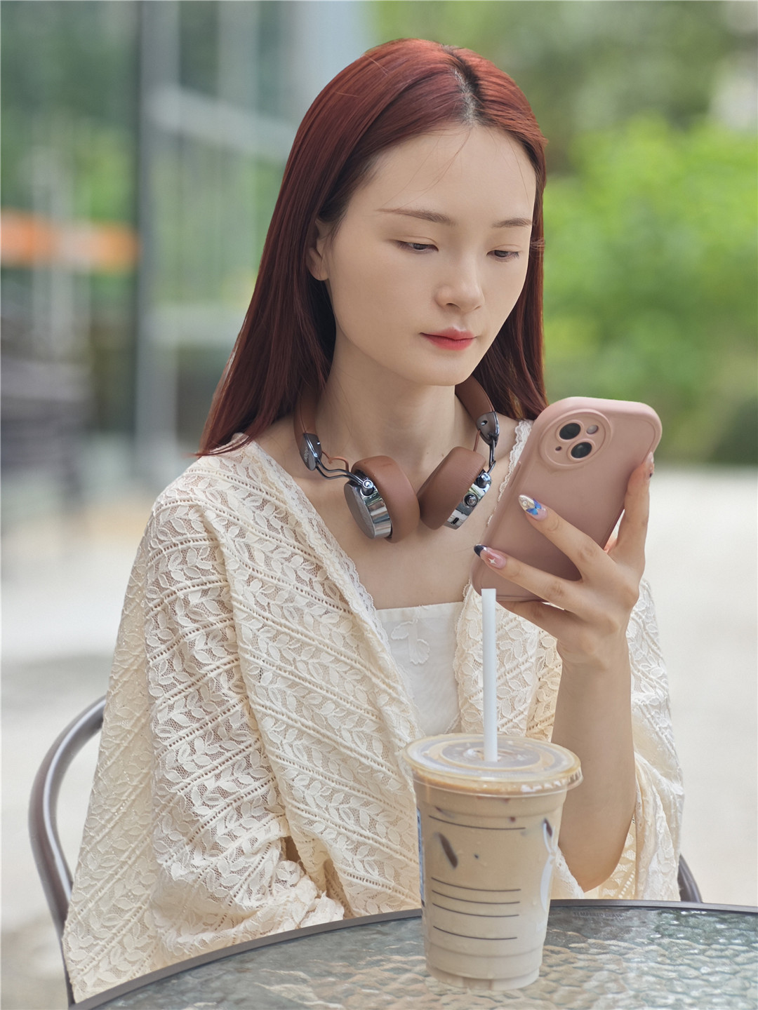 之前戴头戴耳机总觉得不舒服,要么夹头发,要么戴久了头疼,但 QCY Era 7 完全不会。它的头梁是记忆蛋白皮的,特别柔软,戴再久也不咯头。