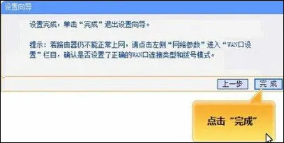 五.接下来会提示设置完成界面,直接点击底部的“完成”就可以完成路由器的设置了,如下图所示。