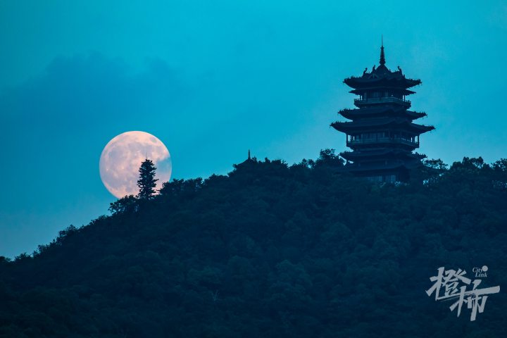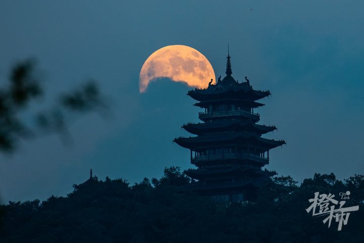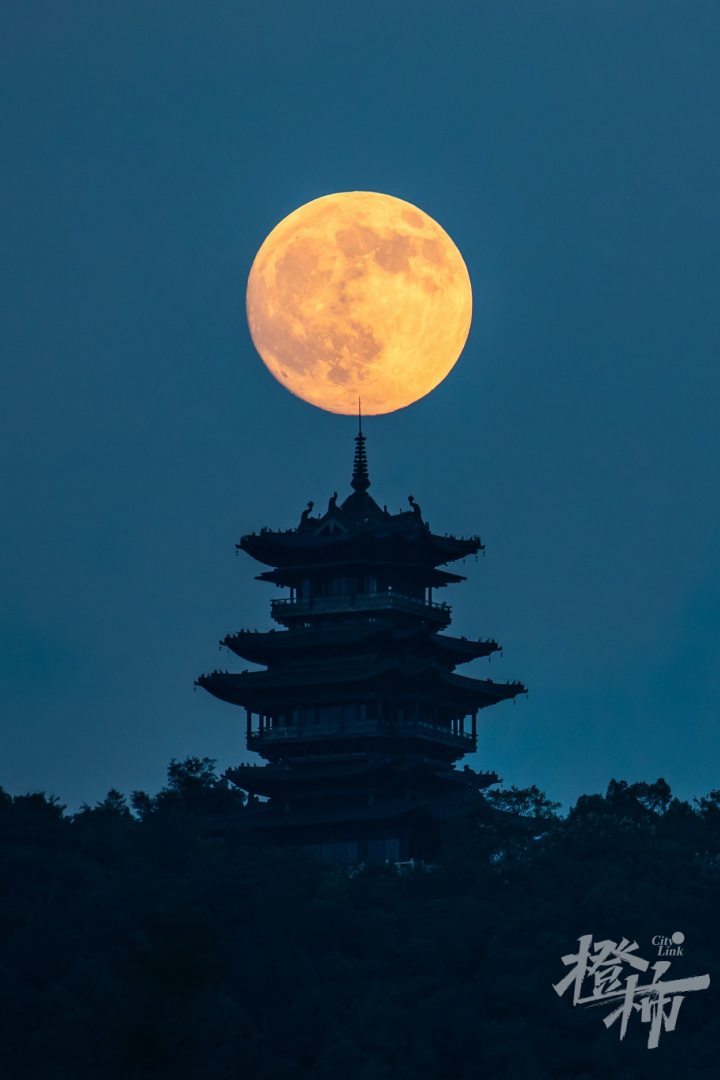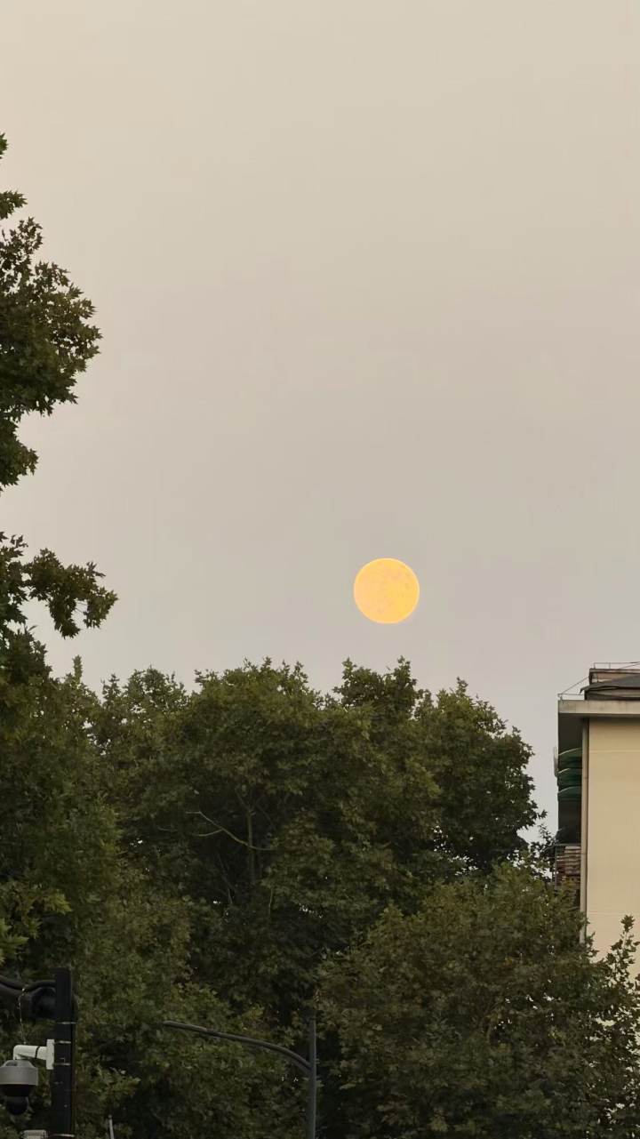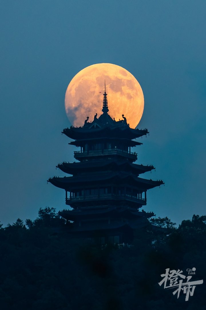 今天傍晚,中秋节的满月与望宸阁交相辉映。 记者 陈中秋 摄⬆️