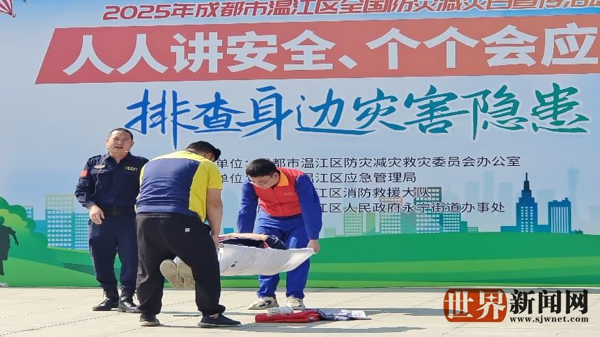 今日上午,以“人人讲安全、个个会应急——排查身边灾害隐患”为主题的2025年全国防灾减灾日宣传活动在成都市温江区永宁街道芙蓉文化广场圆满举行。活动由成都市温江区防灾减灾救灾委员会办公室主办,通过科普宣传、装备展示、沉浸式体验等形式,为近千名市民带来一场生动实用的“防灾减灾公开课”。