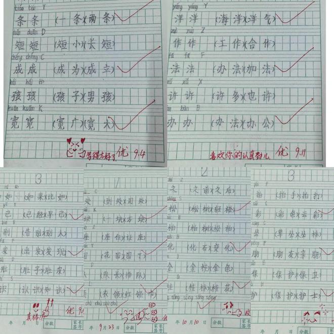 汉字是世界上最古老的文字之一,是中华文化的重要载体和鲜明标志。规范汉字是国家通用文字,规范汉字书写能力是中小学生必备的基本技能。俗话说,字如其人,写一手好字不仅能“正姿正身”,还能使人受益终生。一笔一划见态度,一撇一捺显素养。为培养学生正确的“坐姿”与“握笔姿势”,夯实书写基础,学校特推出写字作品展示专栏,让孩子们在墨香中感受汉字之美,在规范中养成良好习惯。