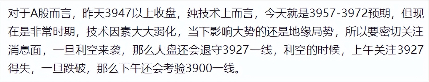 上午收盘卡点3927,按照盘前推演纯技术上合格了,但目前不是技术主导,而是宏观面,午间布油已经大涨超6%,而恐慌指数(期货)也大涨超5.50%,现货白银大跌5%,就凭这三个指标,午后A股亚历山大。