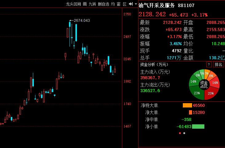 这个过程中,午后还要持续关注恐慌指数和布油涨幅,一旦布油涨超7%,那么油气板块就会冲击6%以上涨幅,上午收盘的时候涨幅只有3.17%,目前是非常时期,一旦油气板块大涨,那么预示着其他方向,尤其科技股方向跌幅会加大,而科技股直接决定人气和指数。