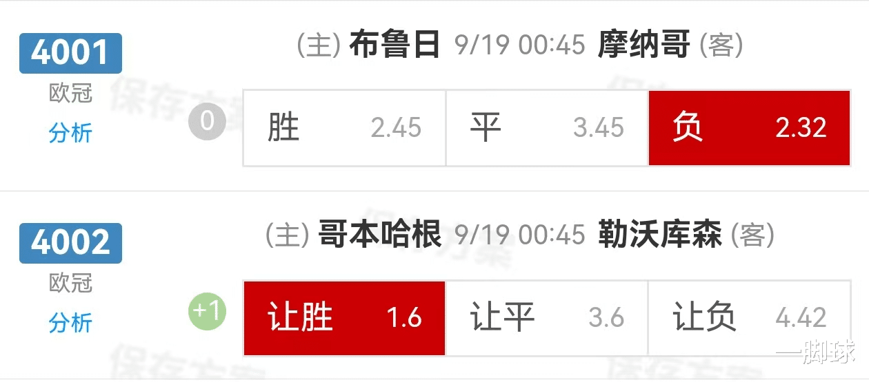 尽管布鲁日在2018-19赛季的欧冠杯小组赛中面对摩纳哥保持不败,并且还有4-0客场大胜的纪录,但时间较远,参考的意义并不大,初始数据对于摩纳哥的支持力度不足,后期更是进一步降到了和布鲁日相同位置,但摩纳哥的整体实力要强于布鲁日,尽管布鲁日欧冠资格赛横扫且含金量较高,但目前热度过于集中在布鲁日一边,本场比赛摩纳哥虽然客场作战且面临伤病问题,但在进攻火力、战术灵活性以及球员整体实力上并不落下风,此役反向行之,高看摩纳哥顶住压力,先行取得欧冠小组赛开门红。