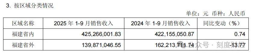 惠泉啤酒营收的基本盘严重依赖于其传统优势区域,该市场前三季度贡献了73.9%的营收,但4.25亿元的收入规模同比仅微增0.74%,清晰表明其市场容量与份额已触及天花板。