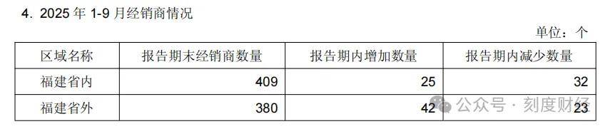 以整体收入测算,省外经销商平均年销售额约37万元,仅为省内经销商约104万元的1/3,反映出省外经销商动销能力弱、覆盖效率低的问题。部分省外区域还存在渠道稳定性不足的情况,新增经销商中不乏因动销不佳退出的案例,进一步加剧了市场波动。