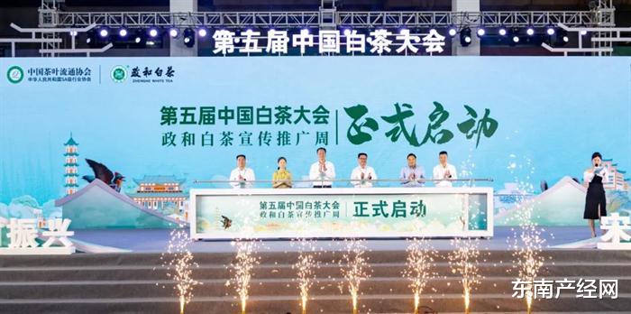 5月18日上午,由中国茶叶流通协会主办、中国白茶城等单位承办的第五届中国白茶大会在中国白茶城胜利召开。中国茶叶流通协会会长、全国茶叶标准化技术委员会主任委员王庆出席开幕式并致辞。南平市政府副市长魏敦盛,中国疾病预防控制中心营养与健康所食品科学室主任黄健,中华全国供销合作总社杭州茶叶研究所副所长孔俊豪,福建省农业农村厅二级巡视员郑晓梅、教授级高级农艺师苏峰,政和县委书记黄拔荣、县政府县长王丰、县人大常委会主任翁贤忠、县政协主席倪顺才,中国白茶城董事长朱祥以及国家部委和福建省涉茶部门领导、专家,全国重点茶业县领导、各地茶业企业、经销商代表等500余人参加大会。