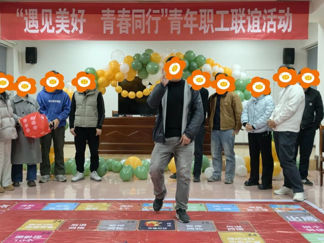 活动中,主持人快速打破现场拘谨氛围,引导青年职工放松身心、主动融入,在欢快的击鼓传花中,大家依次进行自我介绍,快速拉近彼此距离,现场欢声笑语不断。 在“大富翁挑战”环节,青年职工分工协作,全员参与棋盘互动,交替掷骰子、共赴终点。幸运时相互击掌欢呼,遇“惩罚”时齐心协力应对,在沉浸式互动中培养默契、拉近距离、增进情谊,让青春友谊在协作中悄然升温。