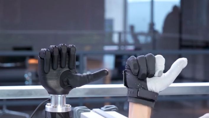 转换层:Alt-Bionics的定制转换层将手套输入转换为稳定的遥控操作命令,供灵巧手使用。