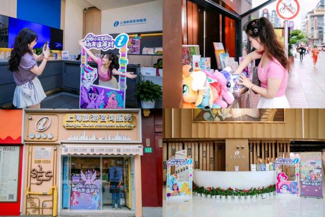 “暮光闪闪·友谊灯塔”、“晴空未来·都市心脏”、“柔柔东方·秘境花园”……活动期间,黄浦区各旅游咨询服务中心摇身一变,化身为《小马宝莉》人气角色的沉浸式体验馆。根据不同景点的特点,各旅游咨询服务中心与紫悦、碧琪、云宝等全球知名“小马”明星相匹配,与节日主题完美契合。同时,服务中心焕新设计的主题“皮肤”形象,也进一步丰富了城市与游客的互动内容,从举着棉花糖的孩童到拍照打卡的银发族,不同年龄的游客都能找到属于自己的"本命小马",在充满“友谊魔法”的氛围中,感受团结、勇气与包容的价值观,让城市文旅空间真正成为传递欢乐。