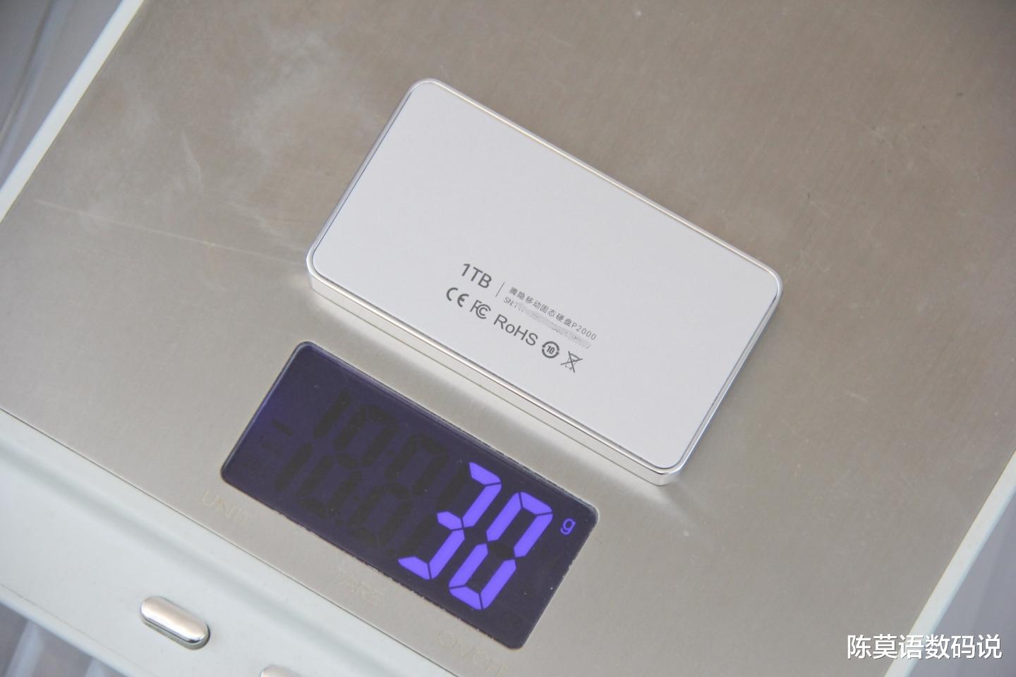 实称只有30g的重量更是刷新了我对移动硬盘的认知,半个鸡蛋那么重的腾隐P2000,拿在手上就跟拿个耳机一样轻盈,瞬间就想扔掉包里像板砖一样的移动硬盘。