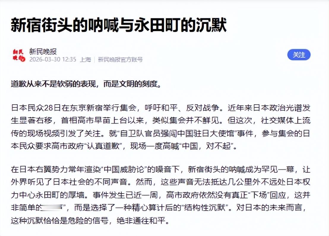 他们看明白了,高市这个不惜牺牲民生也要扩充军备的领导人,已经成了改善邻国关系,维持和平生活的最大障碍。
