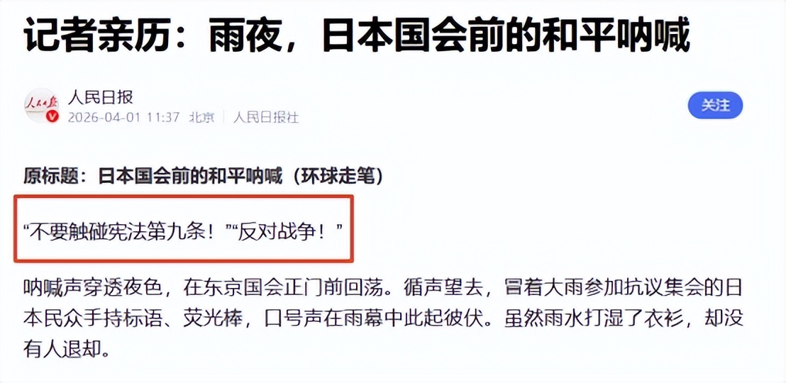 而高市政府近来一直在想方设法地推动修改这条法律,目的就是为了摆脱束缚,让日本重新拥有发动战争的权力。
