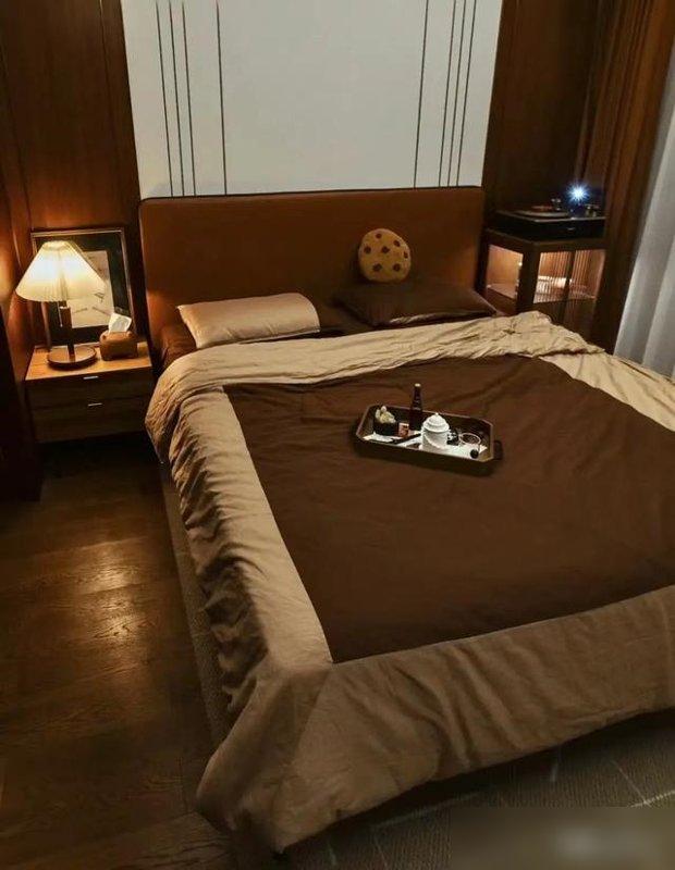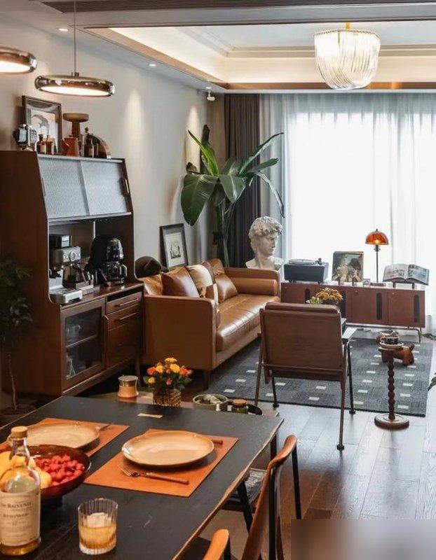 他们选了年轻人不敢碰的深胡桃色,不是跟风追“复古潮流”,是这颜色像老藤椅坐久了的包浆,摸起来有岁月的纹路——墙面是深胡桃,地板是深胡桃,连沙发都挑了同色系的棕,搭配暖黄灯光一推开门,像钻进晒了一下午太阳的旧棉被,暖得能把骨子里那点冷全焐化。