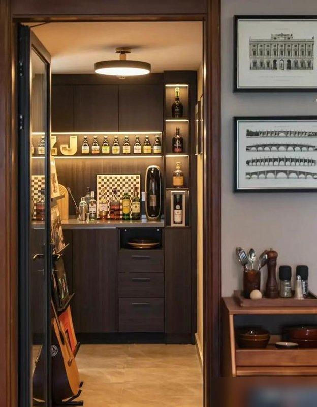 最戳人的还是他们的 “仪式感 ”:每天傍晚六点,餐边柜 的氛围灯准时亮起来,暖光裹着纯黑柜子,像给酒柜戴 串小灯串 ;床头柜上那盏小台灯,每晚睡前都会拧开 ——不是为照明,是老伴儿说 “昏昏光里说话,像回到当年在城隍庙路灯下吃生煎 的日子 ”;阳台酒吧台没有昂贵酒,只有女婿送 的黄酒,温一下喝着暖胃,配两口老伴儿炒 的花生米,比任何 “网红 cocktails ”都甜十倍.