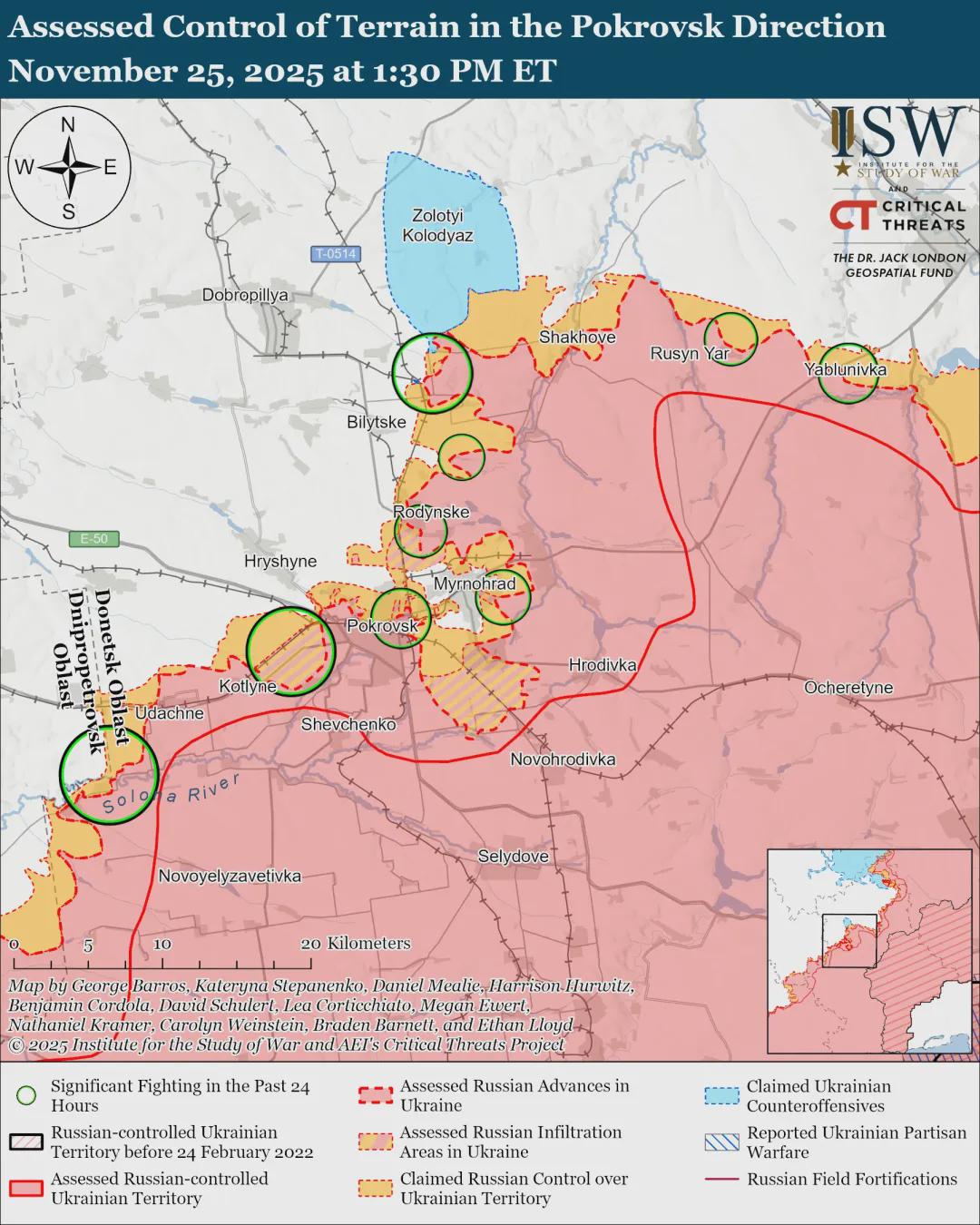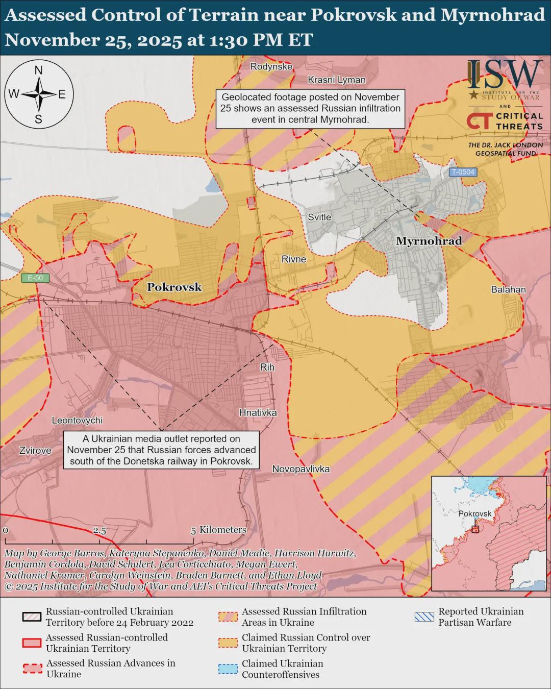 根据美国战争研究所11月25日发布的最新情报,主要有以下关键信息: