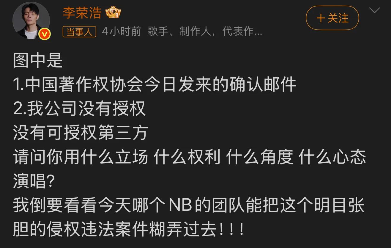 更关键的是,李荣浩的强硬,是在捍卫一个音乐人最核心的尊严——对自己作品的控制权。
